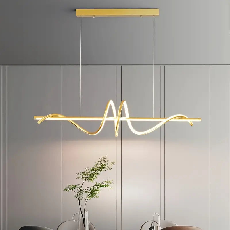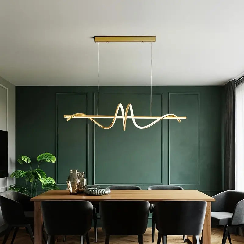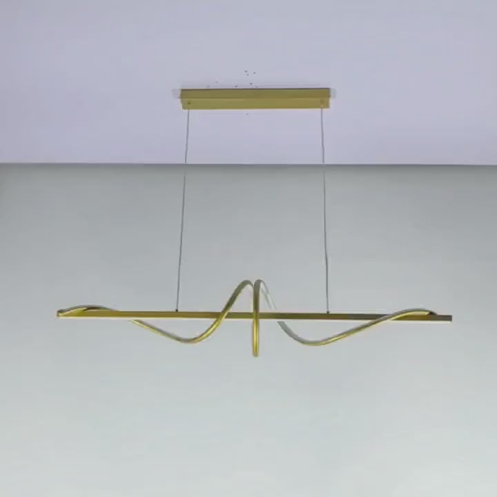 Cette suspension LED contemporaine de 100 cm de longueur repose sur une base rectangulaire de 40 cm, parfaite pour illuminer une salle à manger, un salon ou une cuisine avec style. Sa forme ondulée unique apporte une touche artistique et sophistiquée à votre décoration.